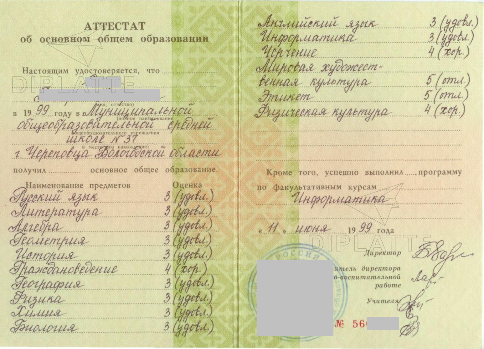 Тут я покажу некоторые образцы аттестатов за 9 и за 11 классов: