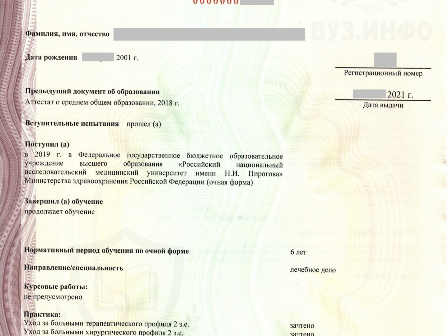Академическая справка из ВУЗа